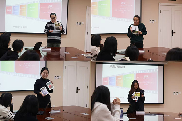 悉心指导,助力成长。在培训过程中,学生助理们积极地参与职业兴趣测试,分享榜样人物,提升自我认知,气氛活跃而热烈。吴沛涓老师指出求职目标的主要影响因素主要包括环境、自身和家庭等,解读了求职定向九宫格和生涯决策平衡单,为学生助理提供了切实可用的选择策略。