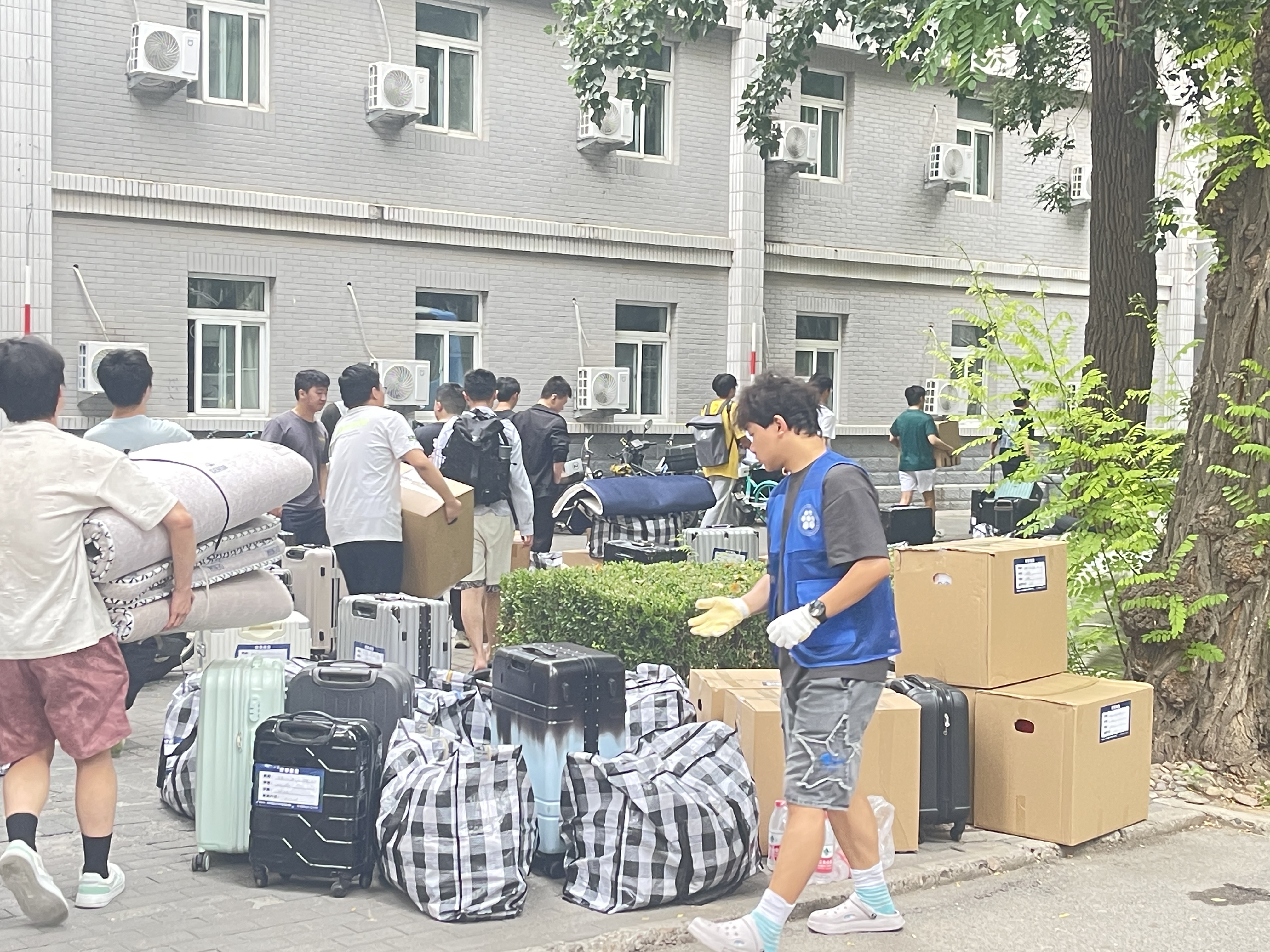 书院党委和各书院对搬迁学生进行了安全教育,使同学们充分了解两校区情况,做好搬迁准备;学生工作部组织了各学院建立学院搬迁工作协同组,统筹做好中关村志愿者的组织安排、现场协调等工作;后勤基建处高效完成宿舍整备工作,物业管理与后勤服务公司累计调度车辆173车次,运输保障坚实有力;保卫部全程维持两校区交通秩序,开辟专属通道,确保搬迁车辆顺畅通行;学生服务中心精确对接各书院、学院学生的搬迁与住宿需求,精心分配宿舍资源,制定搬迁计划,合理安排搬迁车次;校医院在两校区设立医疗服务点,发放防暑降温物资,全程值守应对高温挑战;各学院积极协助学生物品安置,搬迁后第一时间走访宿舍慰问学生。