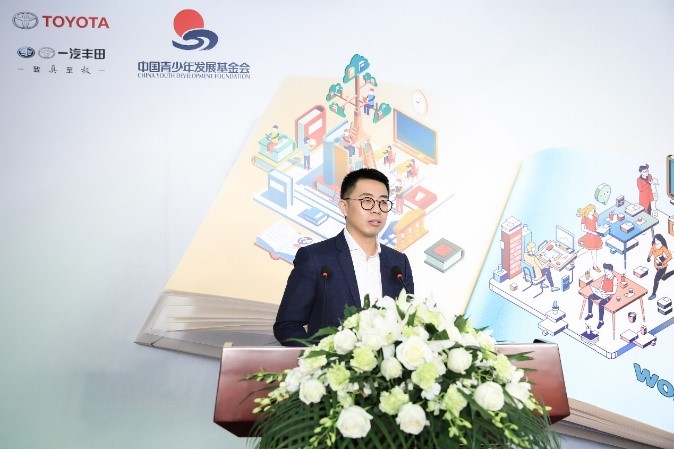 一汽丰田公司代表吴依南作为北理工校友再次回到母校倍感亲切。他表示公司将持续为公益事业贡献力量,同时勉励同学们在未来追逐梦想的路上,保持“敢梦,敢为”的勇气,一路前行。